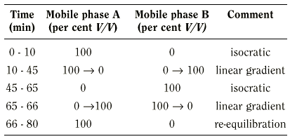 - as mobile phase at a flow rate of 0.7 ml per minute the following solutions: